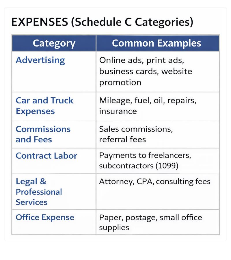 This is a simple Excel workbook designed to help you organize your income, expenses, and mileage in a way that aligns with the way that income and expenses are reported on the IRS Schedule C.